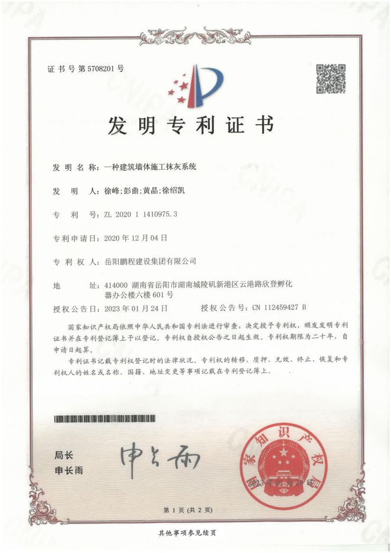 下一篇:一種地基建筑砂漿注入設(shè)備-發(fā)明專利證書(徐峰、徐紹凱、彭..